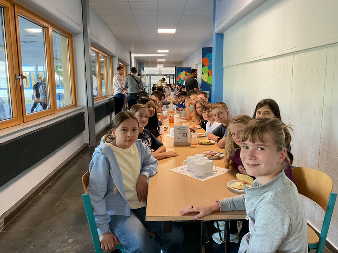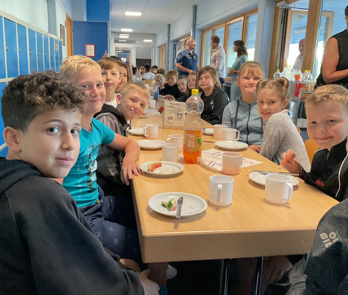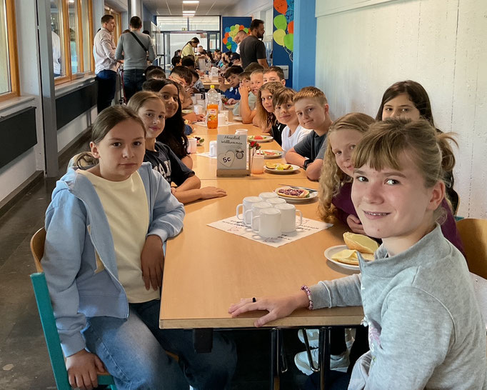 Um gestärkt den weiteren Tag zu erleben, fand im Anschluss ein gemeinsames Frühstück mit den Eltern statt. Erst danach ging es für die Schülerinnen und Schüler mit den jeweiligen Klassenleitungen in die neuen Räume. Nach einigen Erklärungen folgte ein „Schnuppergang“ durch das ganze Schulgebäude, wobei man einiges vom Kennenlerntag wiedererkannte, aber auch neue Dinge entdeckt wurden.
